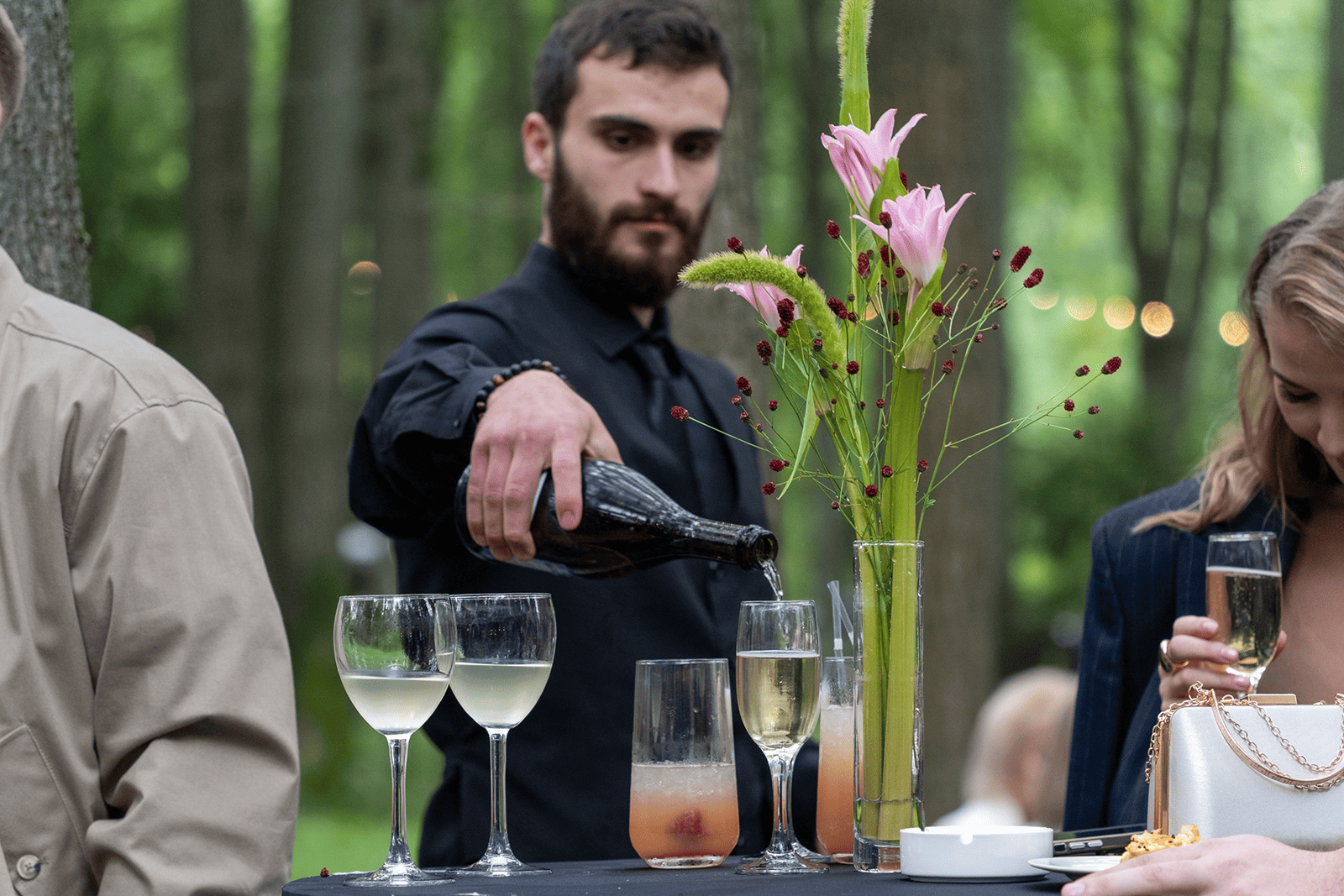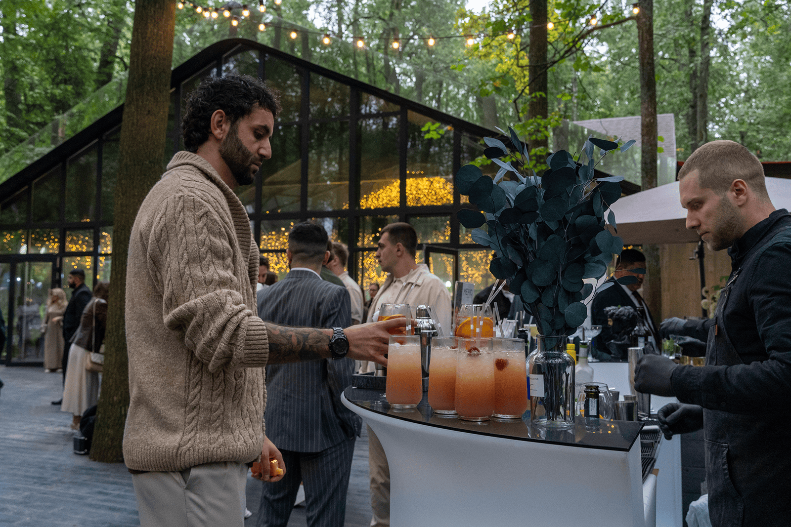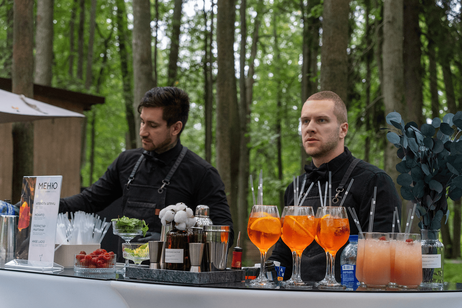 Выездной бар на свадьбе — это не просто подача напитков, а создание особой атмосферы праздника, забота о каждом госте и возможность удивить своих друзей оригинальными коктейлями и безупречным сервисом. Мы с удовольствием позаботимся о впечатлениях ваших гостей, обратитесь к нам и позвольте помочь сделать особенным день волшебным!