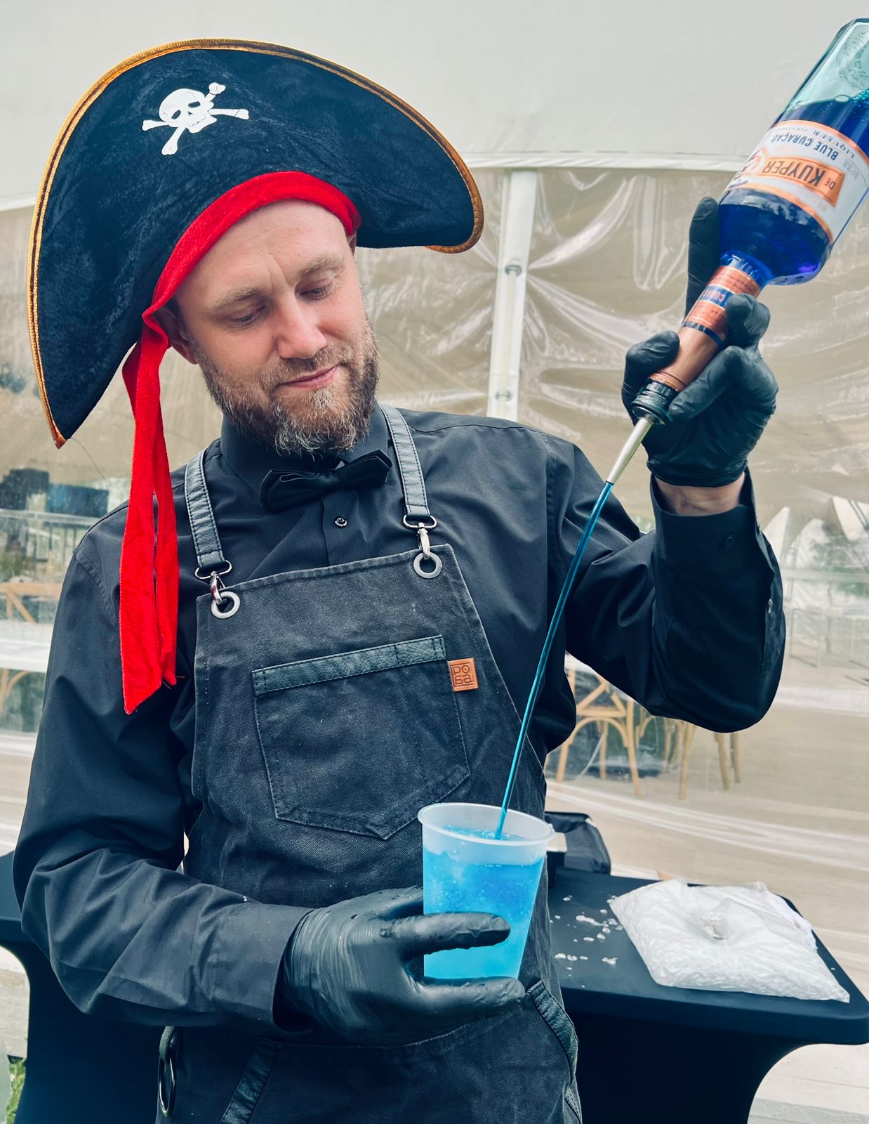 Пиратский бар это тематический бар для вашего праздника. Бармен - пират, стойка стилизована под пиратский корабль и конечно же настоящие пиратские напитки.